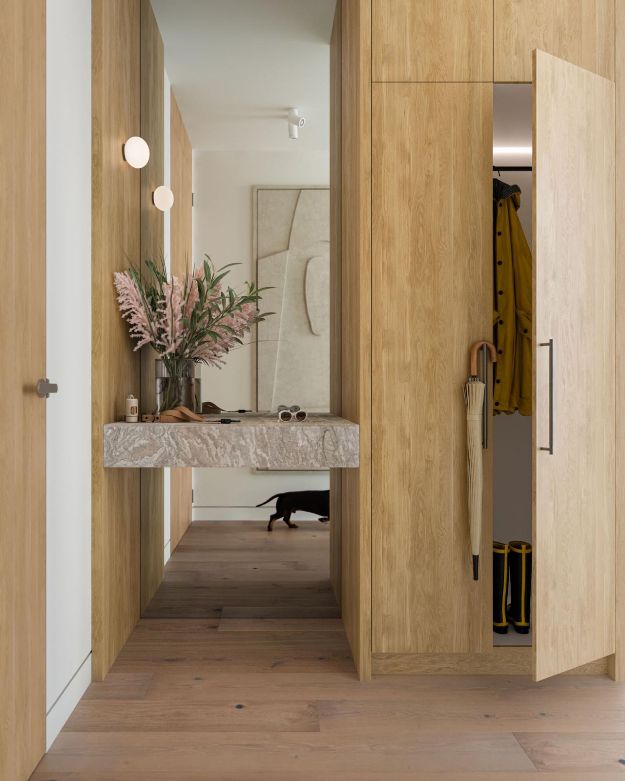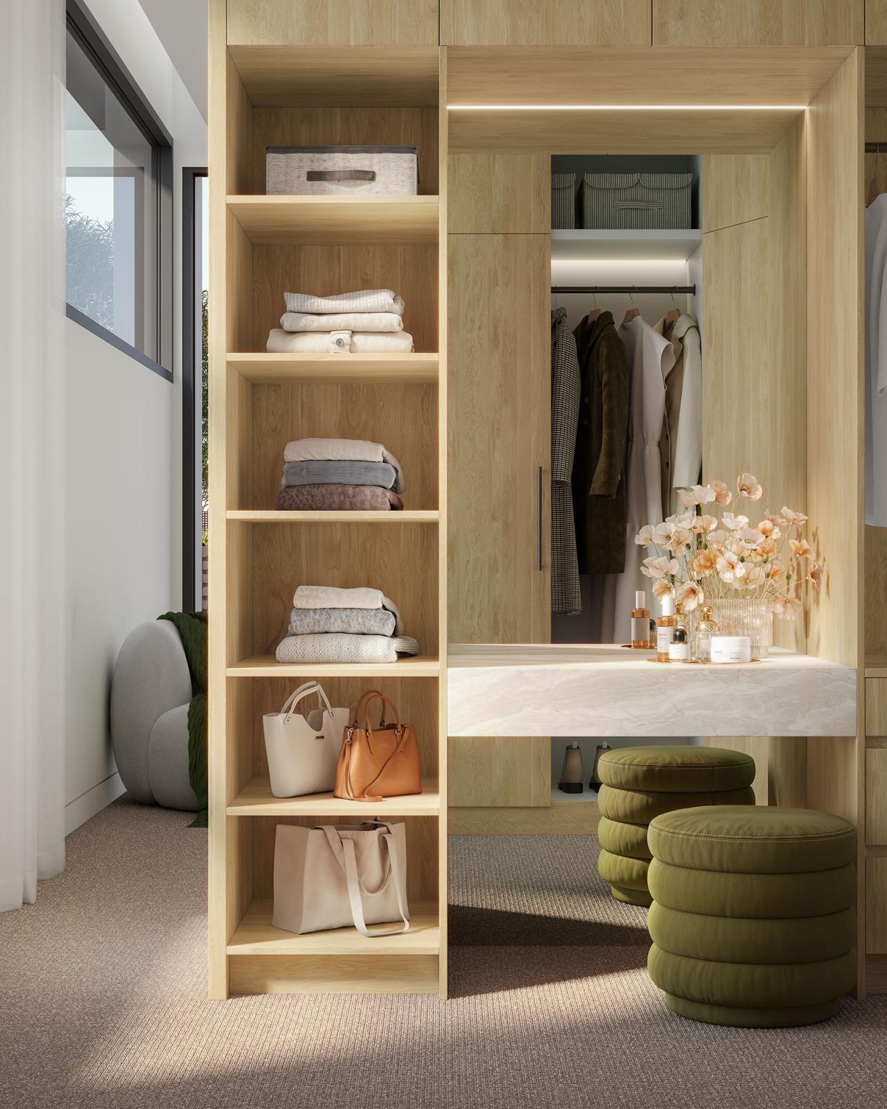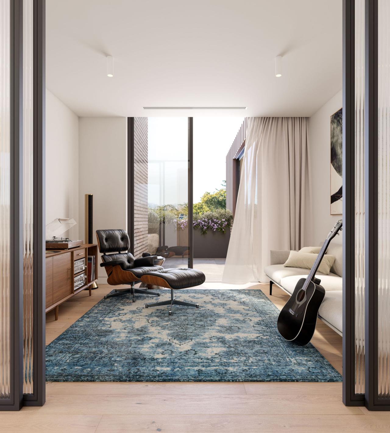 A refined, restrained interior palette of natural materials – metal, stone, and timber – imbues the spaces with a sense of enduring quality and sophistication, reflecting the grandeur of the surrounding suburb. Rich timber floors, natural stone, and metal detailing create a tactile, warm atmosphere. Each residence is designed to offer a harmonious balance of beauty, functionality, and durability, providing a space that is both effortlessly luxurious and built to stand the test of time.